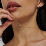 Designed to complement our Classic Solo Stud Earrings, the Solo Diamond Necklace is the epitome of understated luxury. A single white or champagne diamond, meticulously set in 18kt gold, is suspended from a refined loop—allowing it to rest effortlessly on the skin, catching the light with every movement.